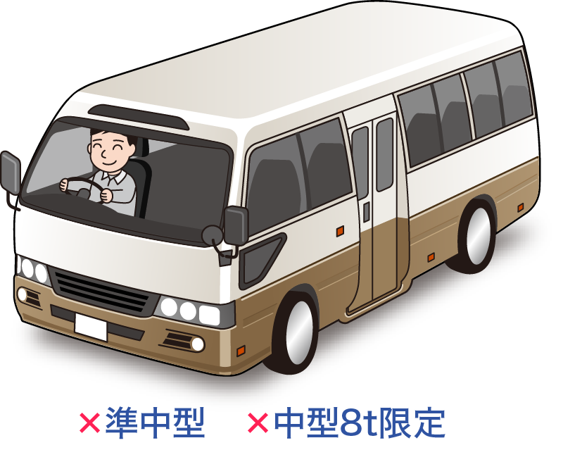 乗車定員11人以上のマイクロバスは運転できませんのでご注意ください。